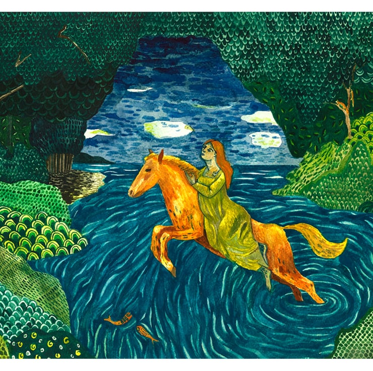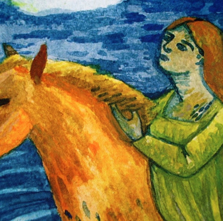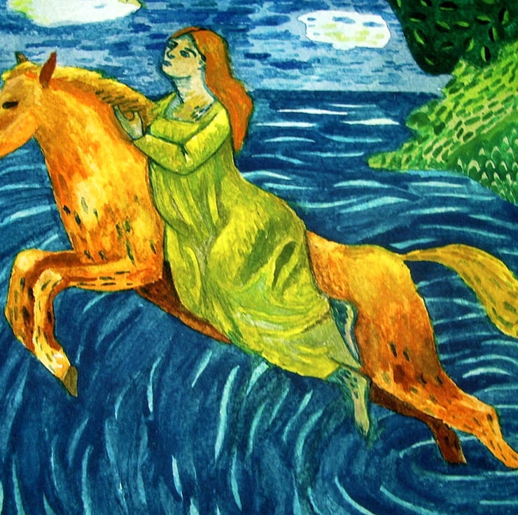 In my painting she is escaping from Zeus' clutches, taking flight on a beautiful horse.