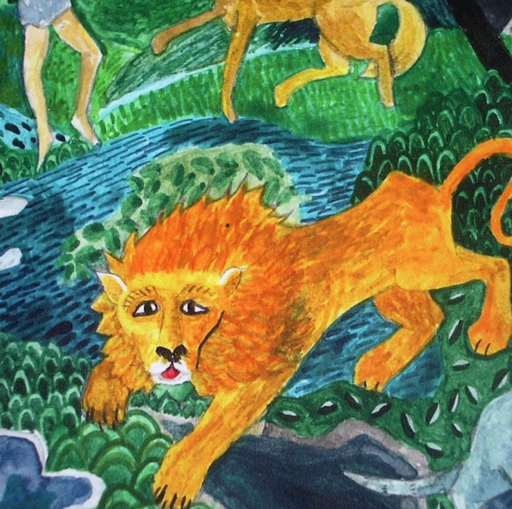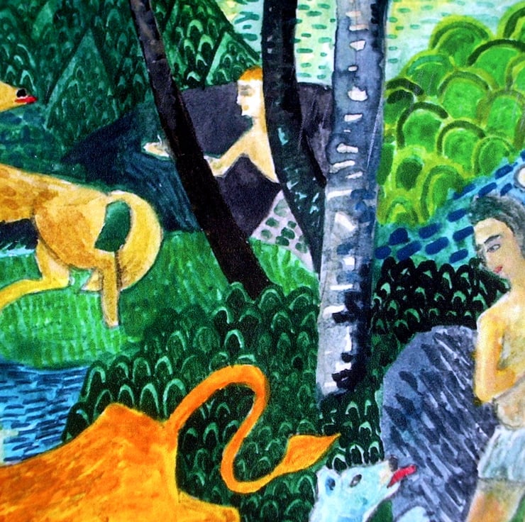 This painting is my version of the painting L'Age d'Or (The Golden Age) by André Derain which blew me away when I saw it this year in Paris at the Musée l'Orangerie- I thought it was so amazing I made my own version, my homage to a wonderful painting.