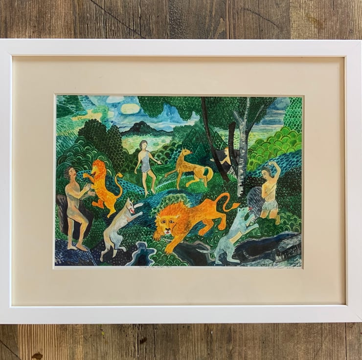 I love this print! It's inspired by a painting I saw in Paris by Andre Derain called L'Age d'Or ( The Golden Age) which blew me away so much that I made my own homage to it when I got home.