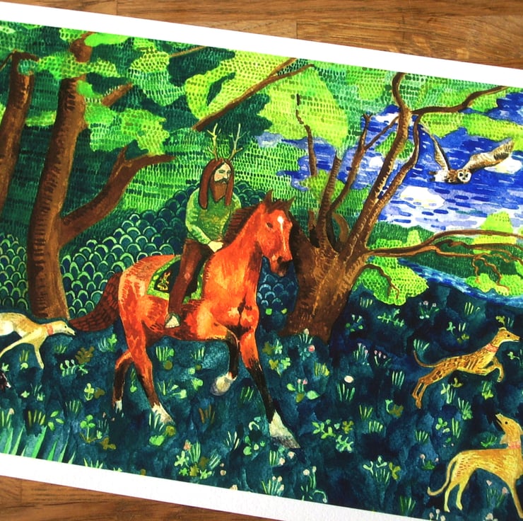 This painting is called Herne the Hunter- an old Pagan God - also known in different guises as The Green Man, Pan, The Horned God and Cernunnos - he is the hunter, sexuality and life cycle no less - what a guy!