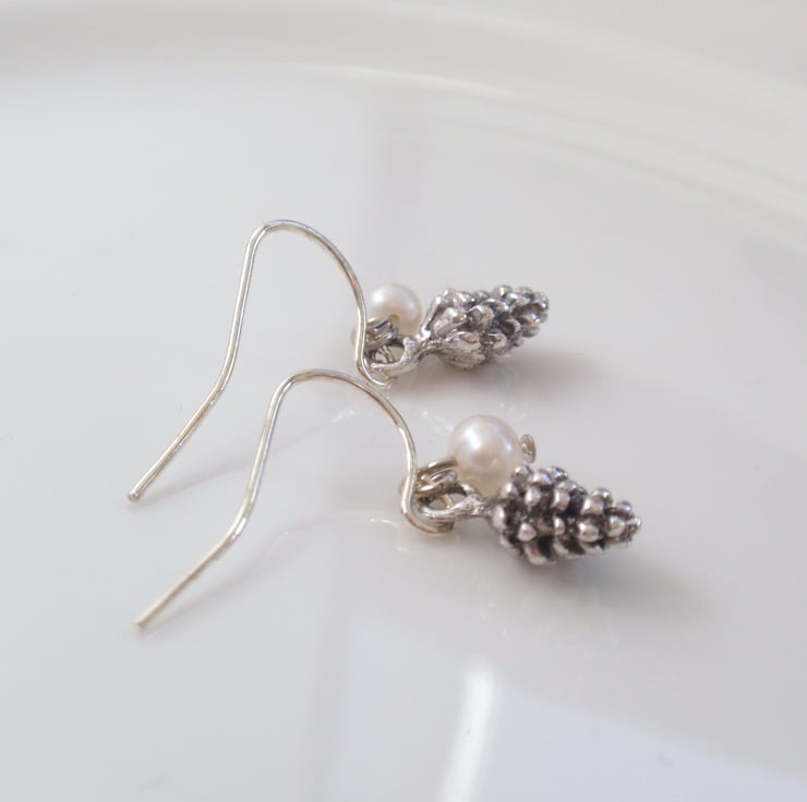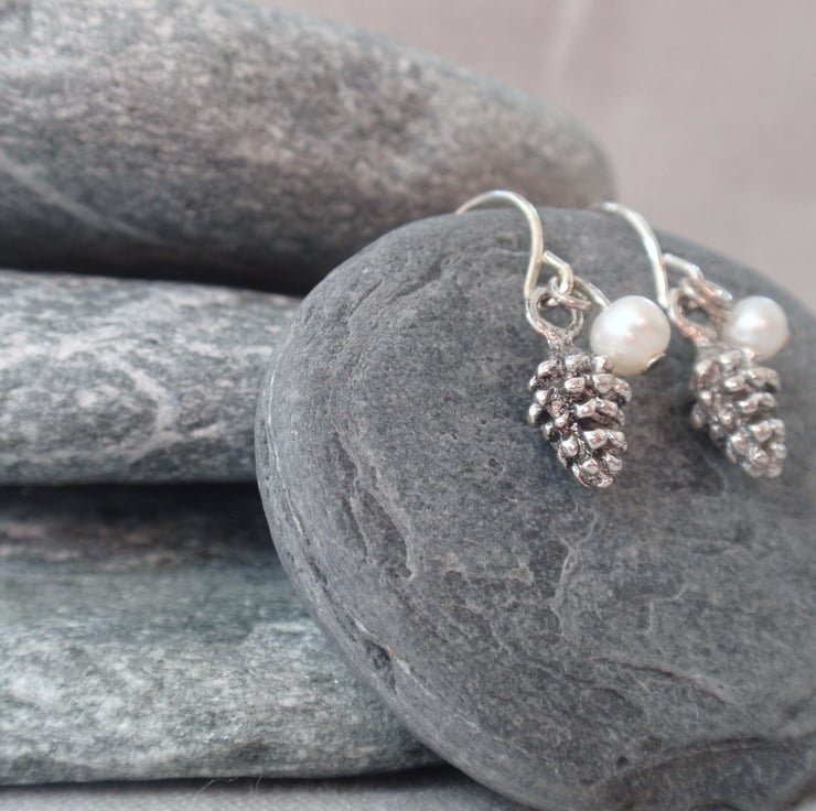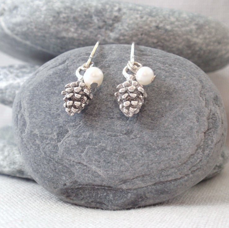 These beautiful little pine cones are lovely nestled with this tiny ivory pearl they are a gorgeous and simple pair of earrings for a crisp winters day.