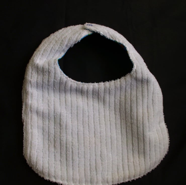 Both bibs are backed in a soft micro fleese lining to absorb wettness both top stitched round for detail and strength then finished with matching blue poppers for fastening.