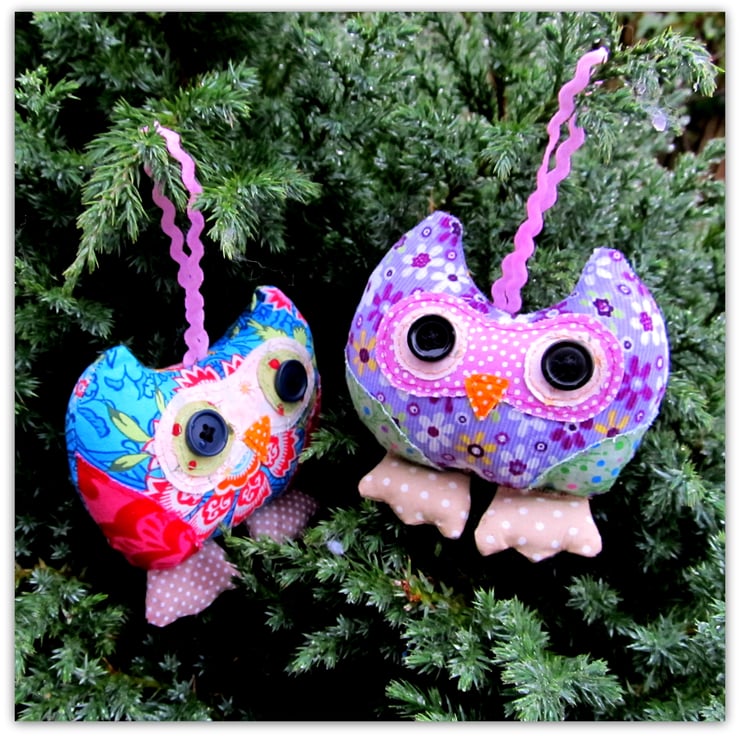 These little owls would be equally at home hanging from a window, decorating a cupboard door or adorning a bag.
