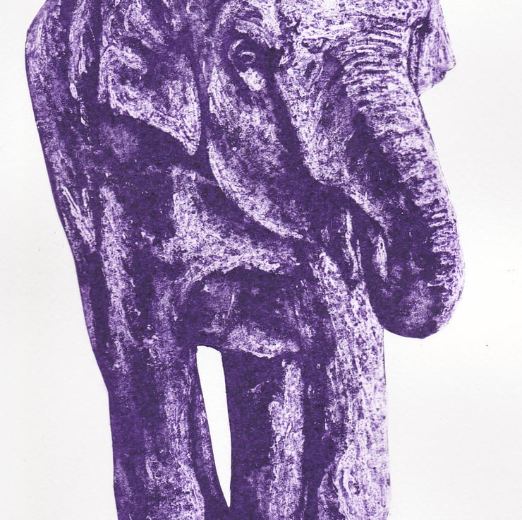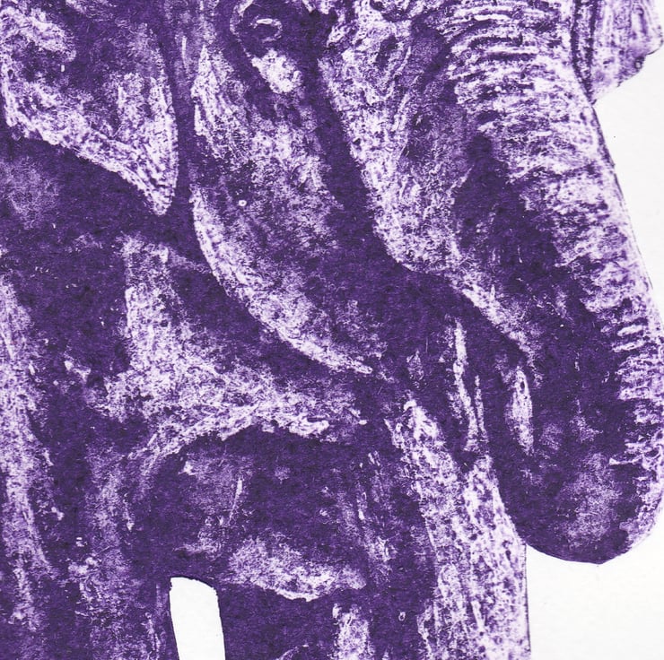 Hand printed on 300gm acid free watercolour paper in purple oil based ink.