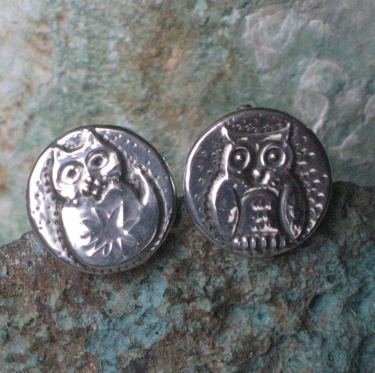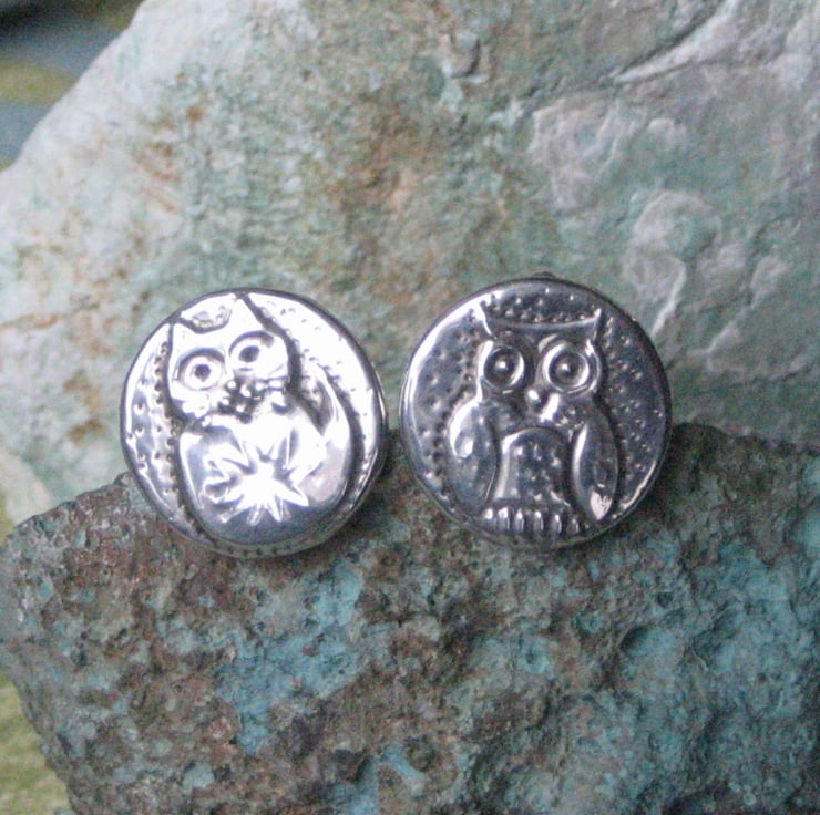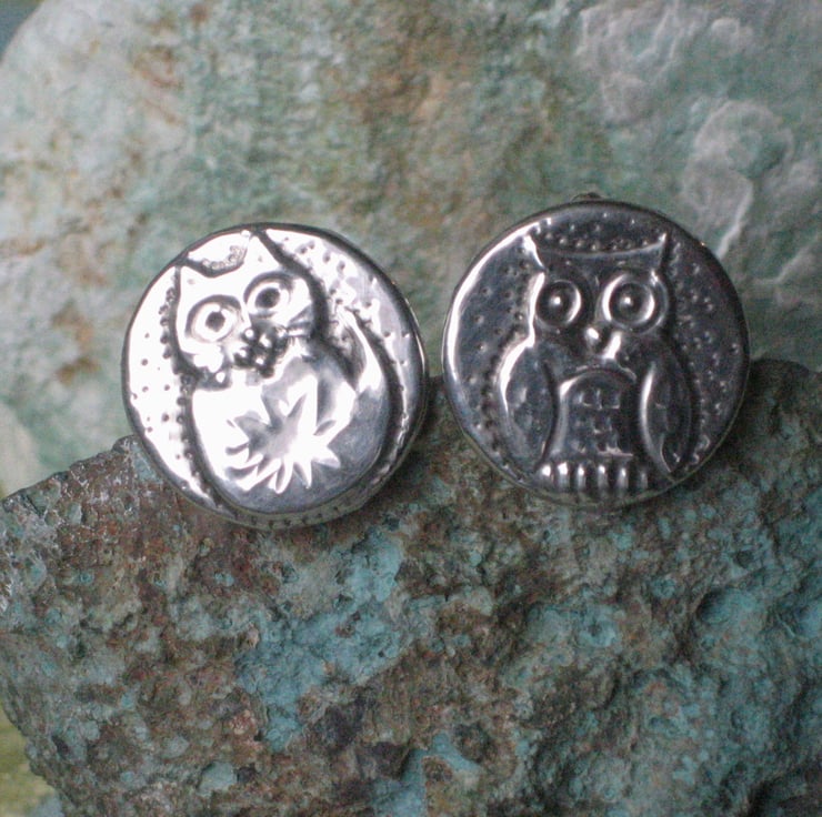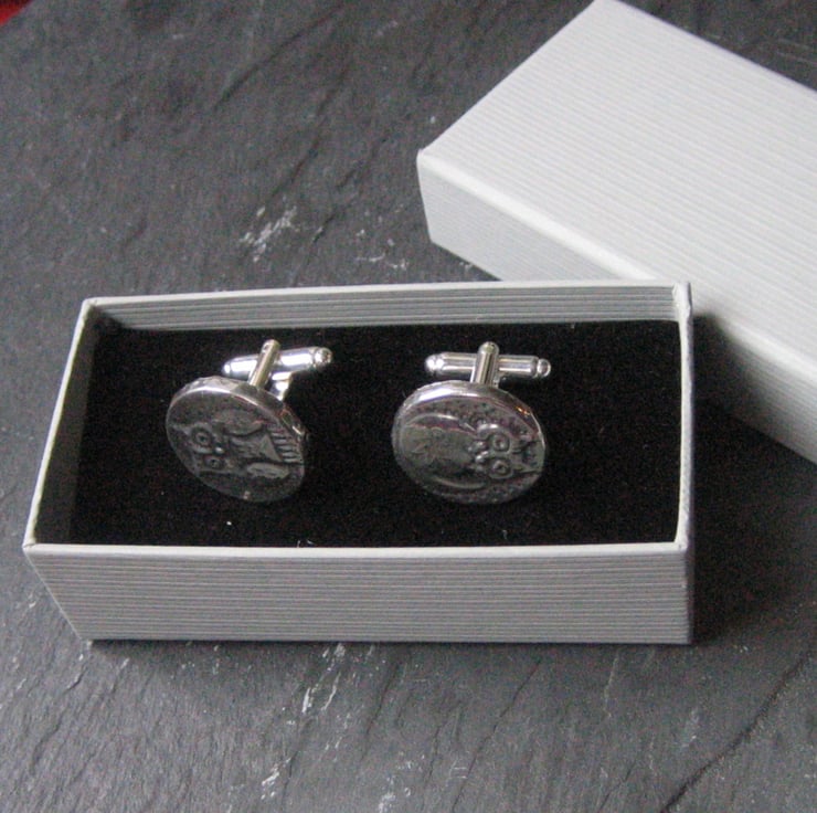 The Owl and the Pussycat went to sea...... These cufflinks have been individually hand-crafted in shiny modern pewter, and feature the romantic pair from Edward Lear's rhyme. Each link measures 2cm,(0.75ins),across. They are presented in a smart grey gift box.