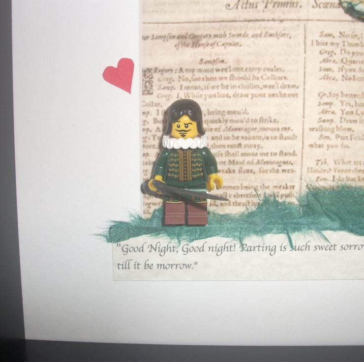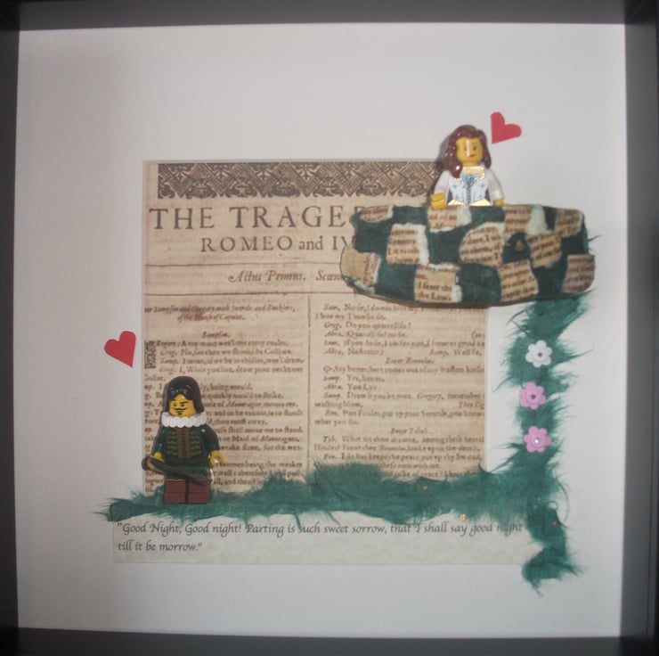 This a unique picture made by myself using Lego, paper, card and Shakespeare text. It comes complete in a boxed frame and is an ideal gift to give a Shakespeare or Lego lover - or if you are like me, both!
