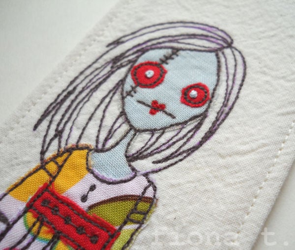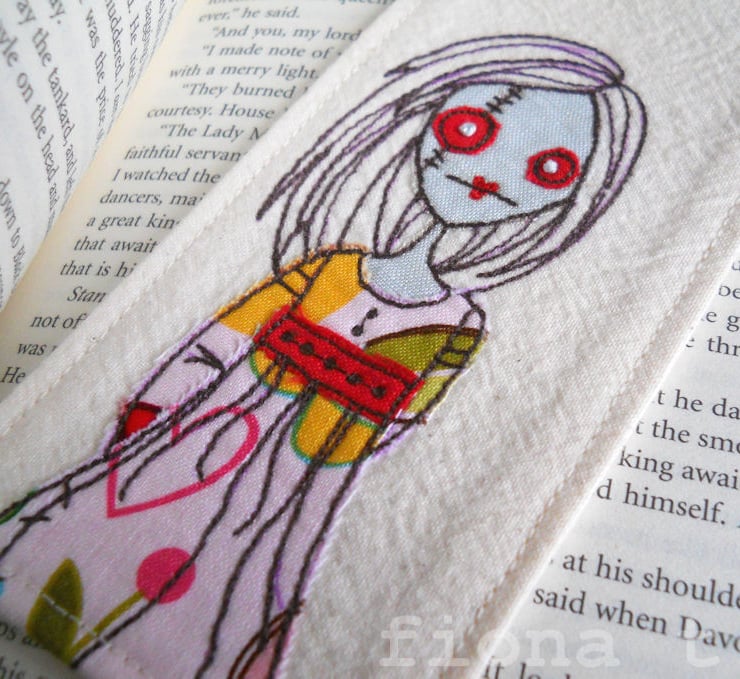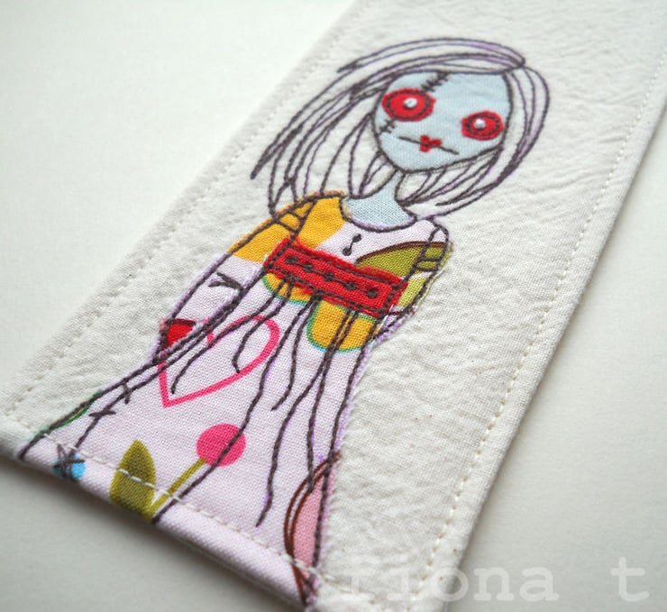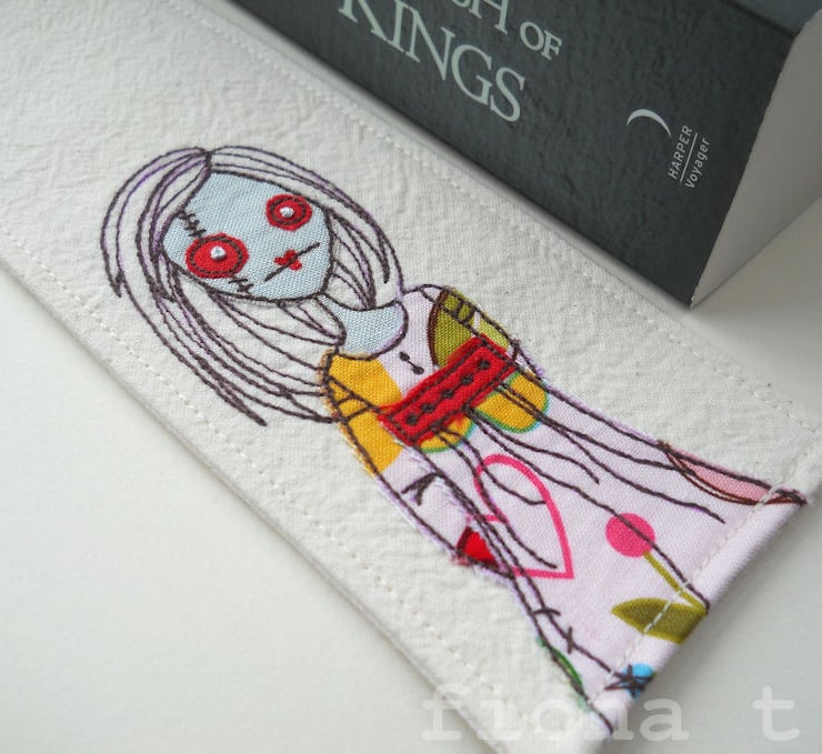 based on an original drawing by Little Black Heart, this bookmark is entirely handmade by me on a domestic sewing machine.