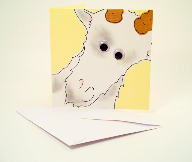 Each image is created individually by cutting out each section of the Goat from my originally designed template. The sections are then layered and glued to create the final piece, I brush sliver ink on to the fur to add shade and texture. I then hand draw around the outline features to enhance the look of the animal, I add the googly eyes to bring them to life giving them their own individual character.