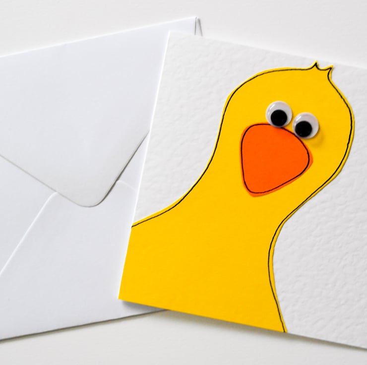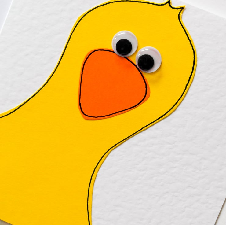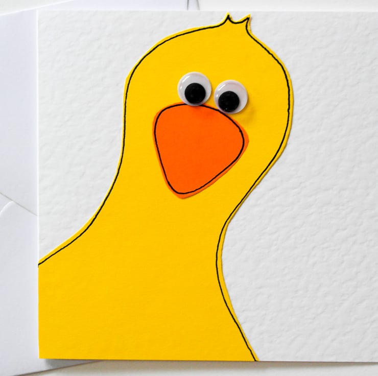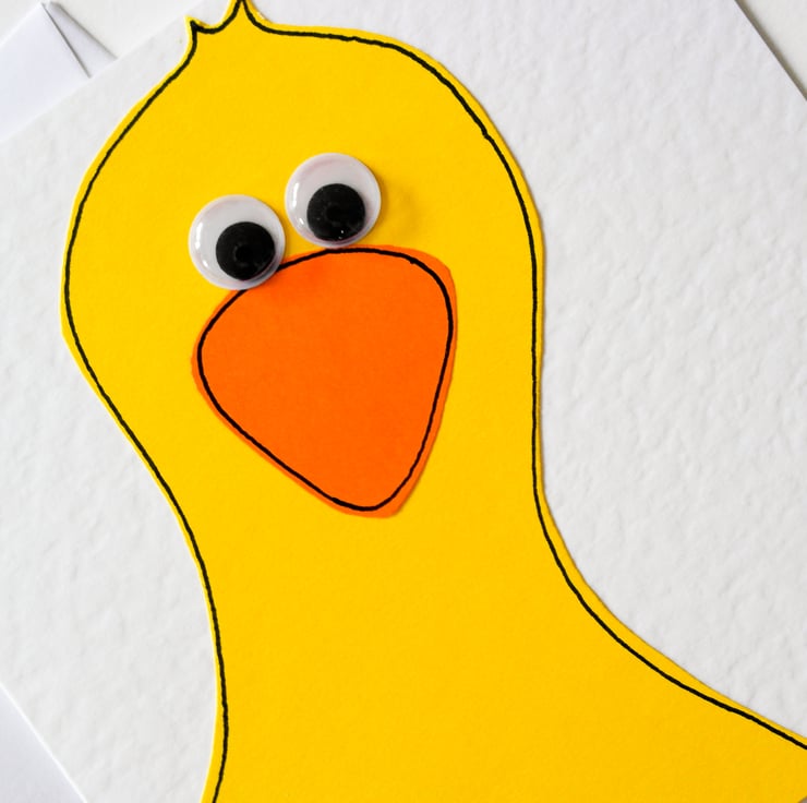 Each image is created individually by cutting out each section of Darcy the Duck from my originally designed template. The sections are then layered and glued to create the final piece. I then hand draw around the outline features to enhance the look of the animal, I add the googly eyes to bring them to life giving them their own individual character.
