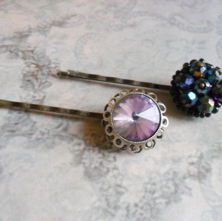 I created these sparkling hair grips/bobby pins from Vintage rescued Aurora Borealis earrings.
