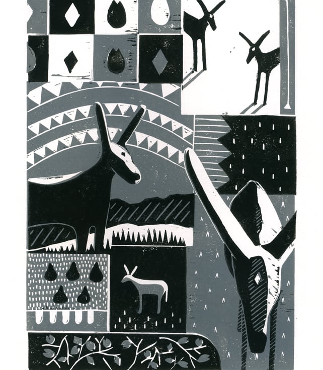 Donkeys are wonderful modest creatures! I just wanted to create a collage linocut to celebrate them. Not much more to say, really!