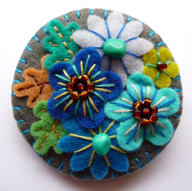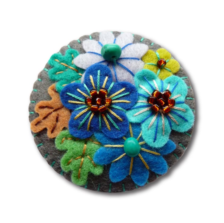 This is for a pretty mini size Japanese art inspired handmade felt pin that I individually designed and handcrafted.Decorated with turquoise stone. My signature B has been laser onto a tiny shell pendant attached at the back of brooch.