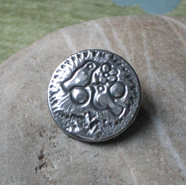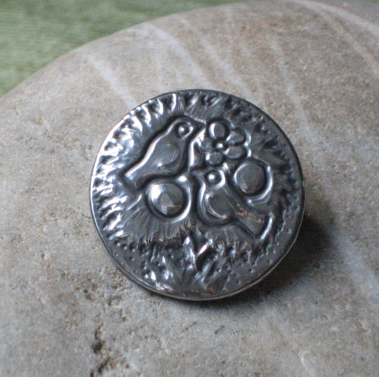 This brooch has been hand-made in modern lead-free pewter. Measuring 29mm in diameter, it has a 25mm pin with safety catch on the reverse. Comes gift boxed (may differ from that shown). A great gift for a 10th Wedding Anniversary, Mothers' Day, Valentine's Day or Birthday.