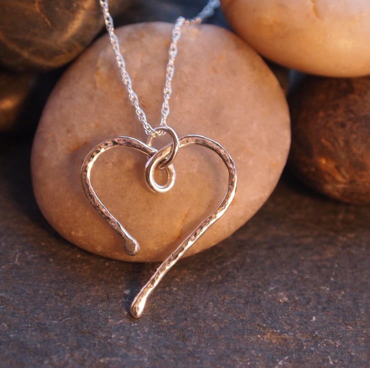 The heart is such a classic shape and works well in this simple design in hammered silver.