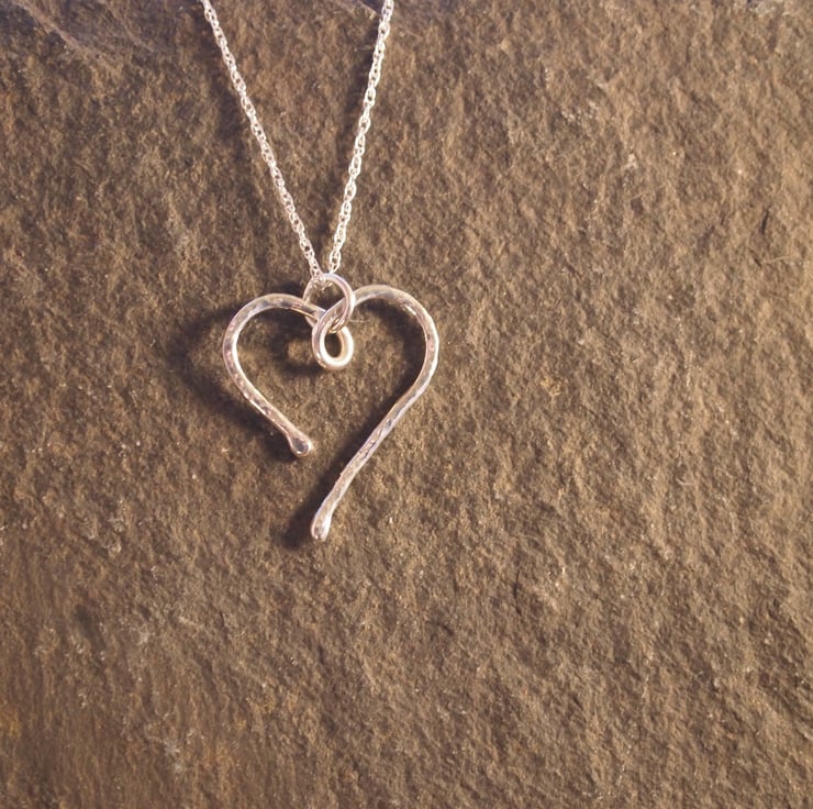 This sterling silver abstract heart has been forged into shape then gently hammered to add texture and sparkle. It has been finished to a high polish. It is available on either a 16" (41cm) or 18" (46cm) sterling silver rope chain. Please state your preference when ordering.