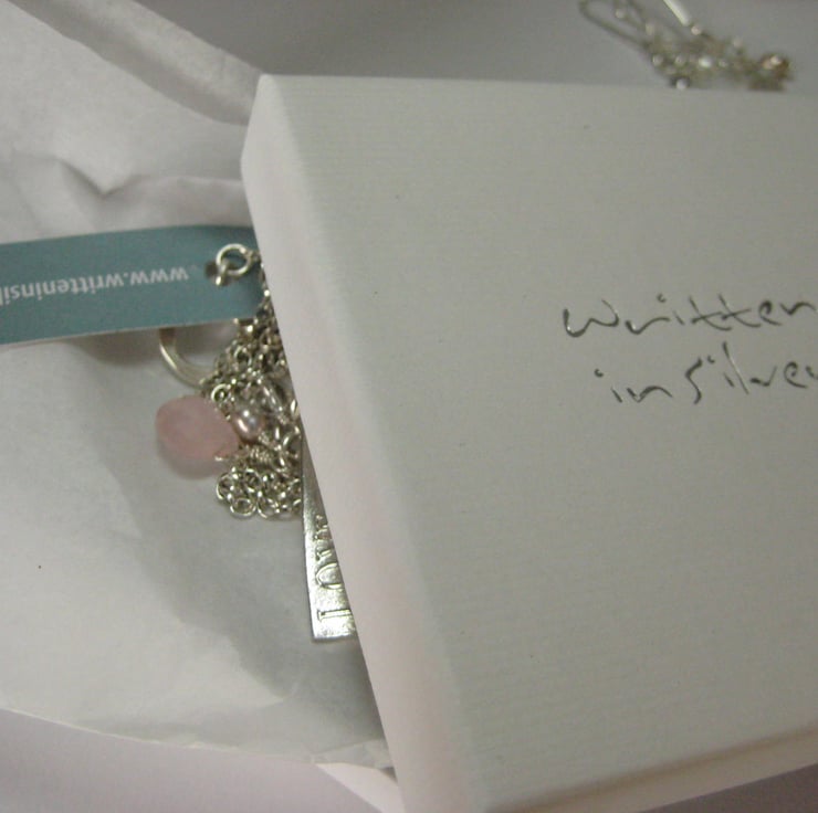 All our jewellery is packaged in a silver and white Written in Silver box and is sent by first class post.