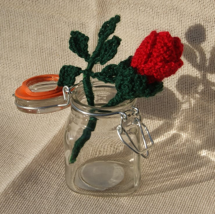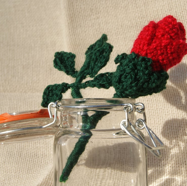 Crochet pattern for a life-size rose bud. It is the ideal Valentine's gift for you special person. It will never wilt or fade. The rose would also make a wonderful corsage or button-hole for a wedding or other special occasion.