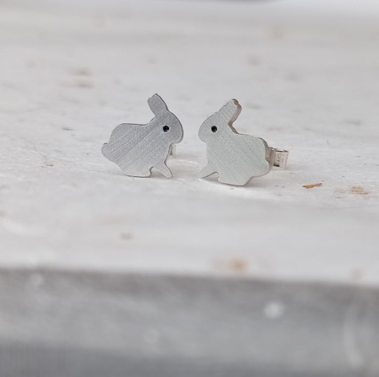 Recycled sterling silver rabbit stud earrings – cute handmade animal jewellery