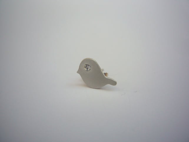 These are simple cute birds, hand cut out of 1mm thick sterling silver. They are approximately 1.1cm wide and 1cm high, with clear crystal eyes and have a brushed finish. Sterling silver ear pins are soldered to the back.