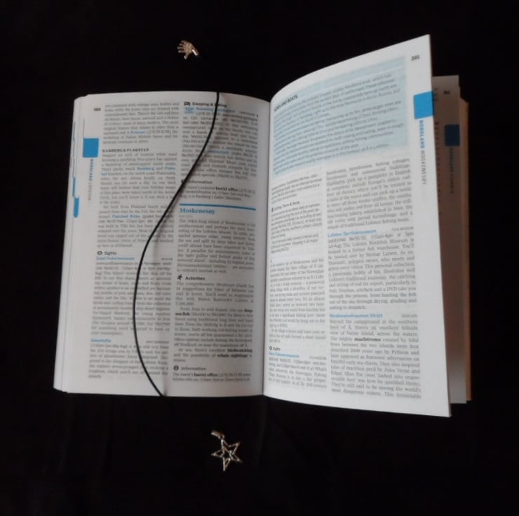A unique bookmark consisting of slim leather thong with a charm either end. Easy to slip into a book to mark the page.