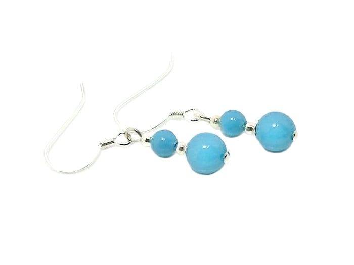 These pretty handmade ladies earrings have genuine blue turquoise coloured 6mm pearls from the world famous crystal company in Austria.