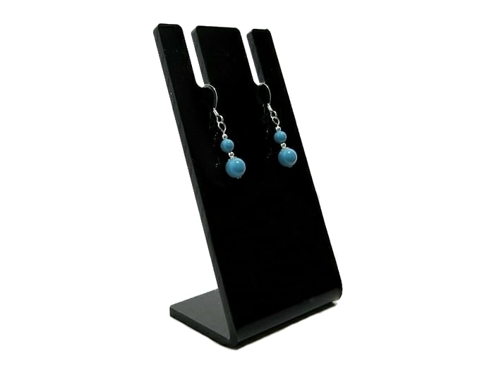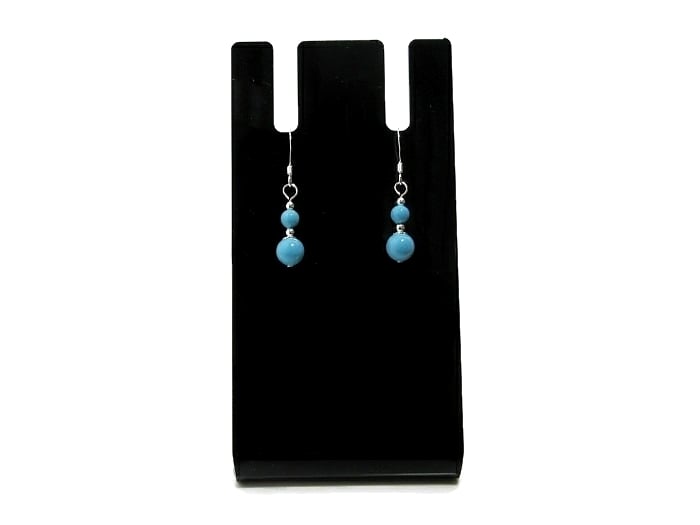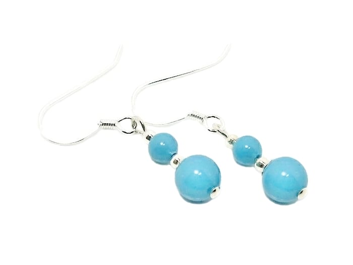 These pretty handmade ladies earrings have genuine blue turquoise coloured 6mm pearls from the world famous crystal company in Austria.