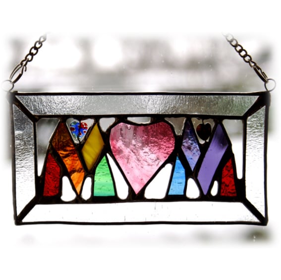 This is a stained glass suncatcher made using the Tiffany copper foil technique.
