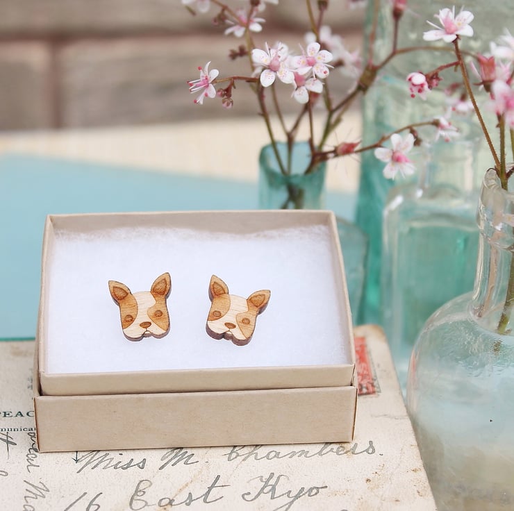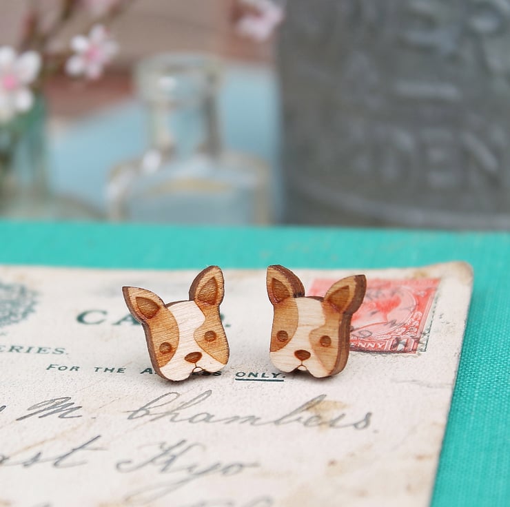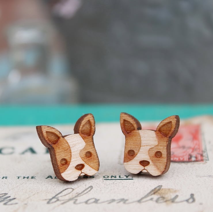 These wooden french bulldog stud earrings are perfect for Frenchie lovers.