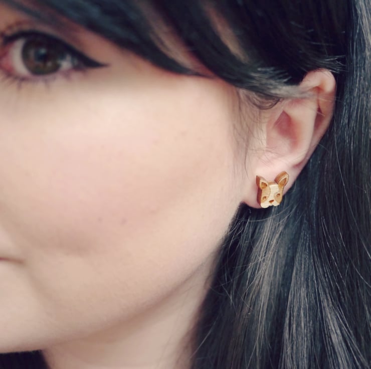 These wooden french bulldog earrings have been laser cut from 3mm birch plywood are glued securely to hypoallergenic surgical steel (nickel free) earring posts which are safe for sensitive ears and do not tarnish. The earrings close with a butterfly back and are coated in wood oil to protect the wood and give it a beautiful finish. The wood is FSC certified meaning it's environmentally friendly!