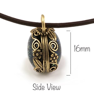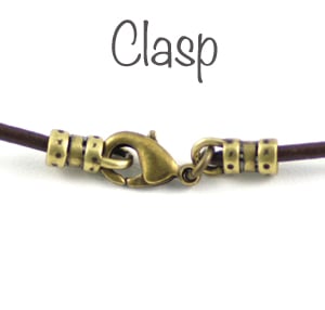 It comes on a dark brown leather cord and you can choose 40cm/16" or 45cm/18" length. Please state which length you would like in the Notes box on the order screen.
