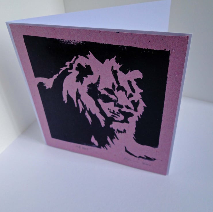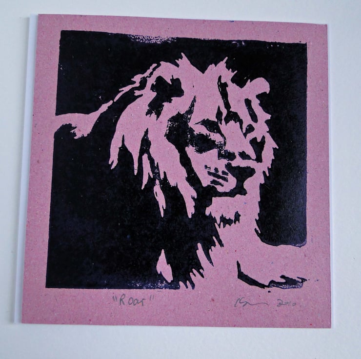 Hand Made Lion Lino Printed Blank Greeting Card Roar