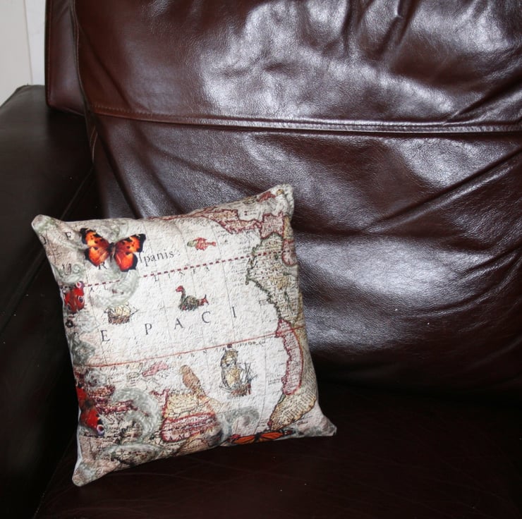 The fabric has a velvet feel to it.The backing fabric is an off white colour with a zip.The inside has been sewn with a sewing machine an overlocker.
