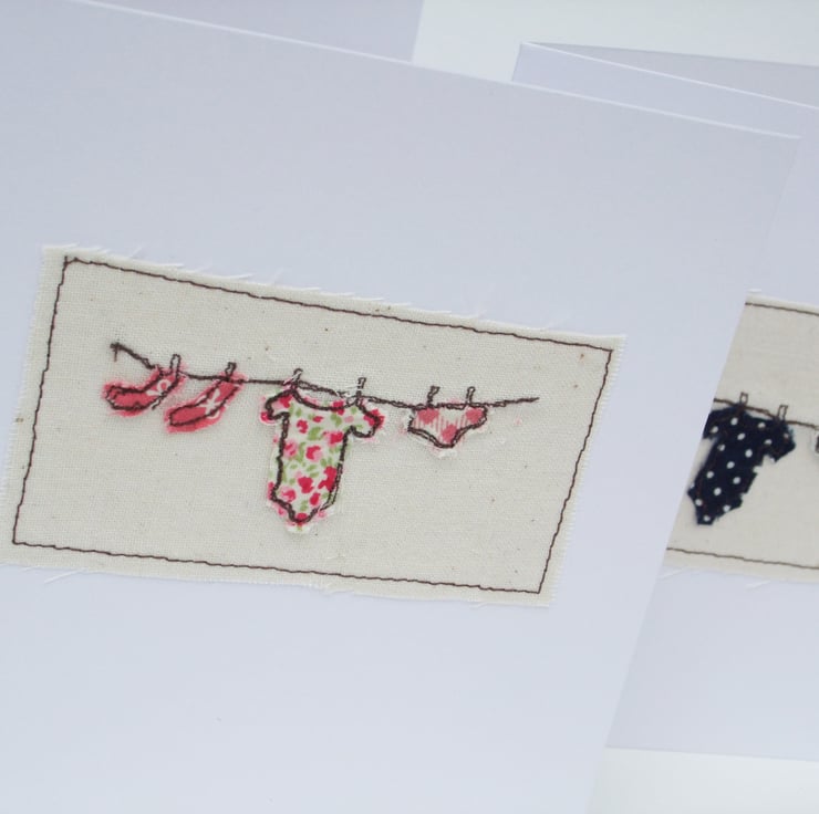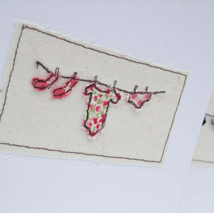 This new baby girl card has been freestyle machine embroidered and makes a lovely and unique card to welcome a new baby into it's family.