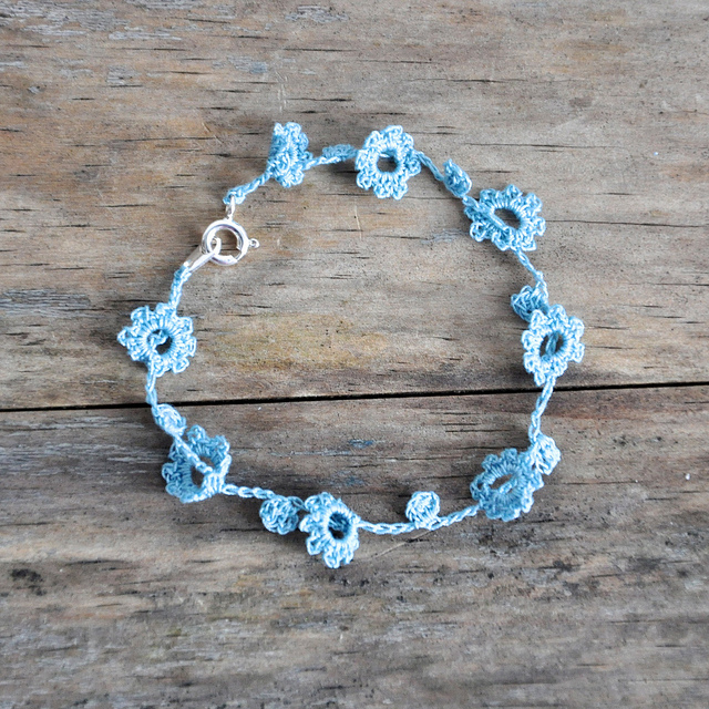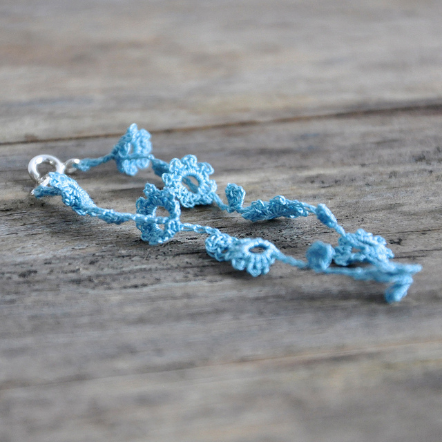 A shorter version of my bracelet that is very long and can be wrapped around the wrist few times. This one has got a sterling silver bolt clasp and is a very sweet fine addition to any Spring everyday outfit.