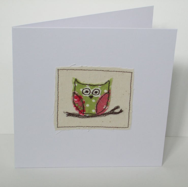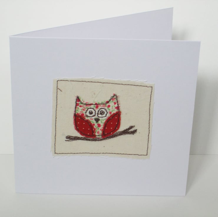 This cute little owl perched on a branch has been machine embroidred onto the card. The perfect card for any owl lover! Each owl seems to have it's own personality! Colours and fabrics will vary. If you have a preference, just let me know!