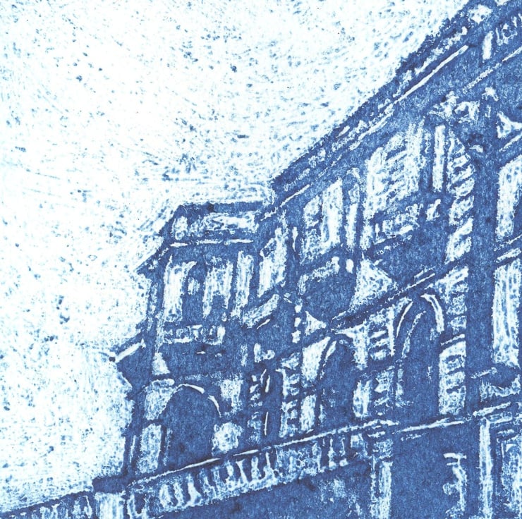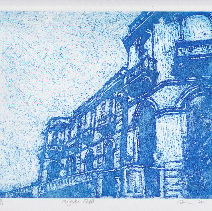 Hand printed on 300gm acid free watercolour paper in blue oil based ink.