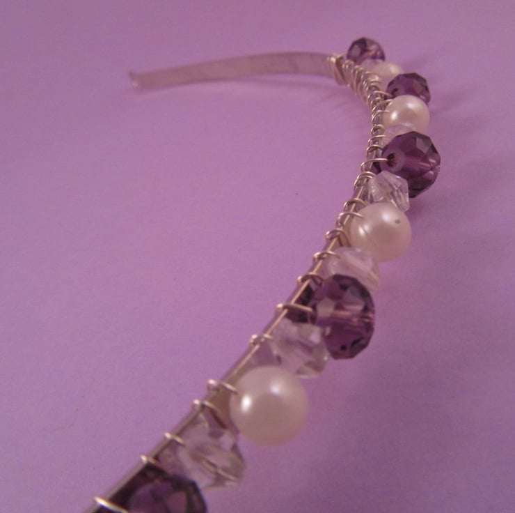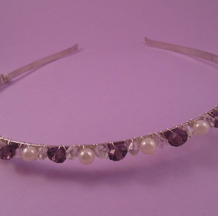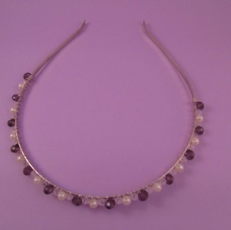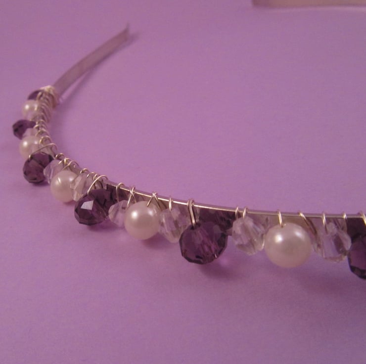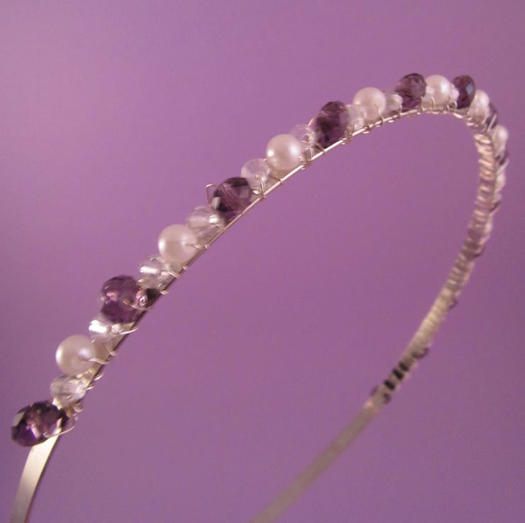 This simple sparkle custom purple and white faux pearl headband is ideal for brides or bridemaids. The photograph does not do it justice. I can create it in a lot of different colours, so please contact me with your specifications.