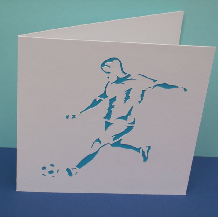 This cleverly designed card has been hand cut out of the card itself and coloured card has been stuck behind the shape. The perfect card for any football lover!