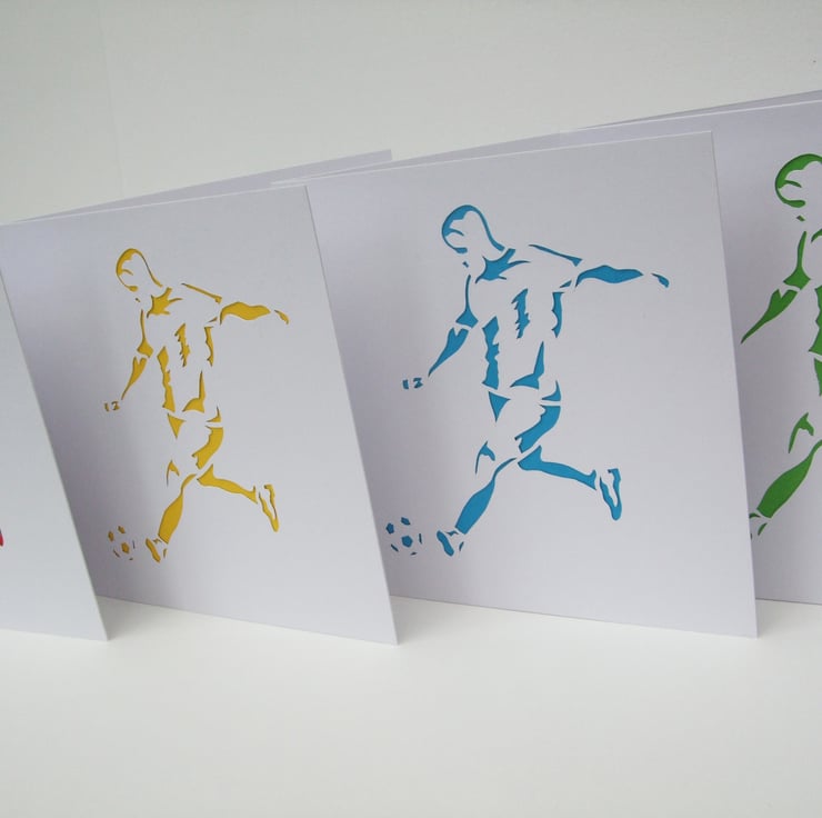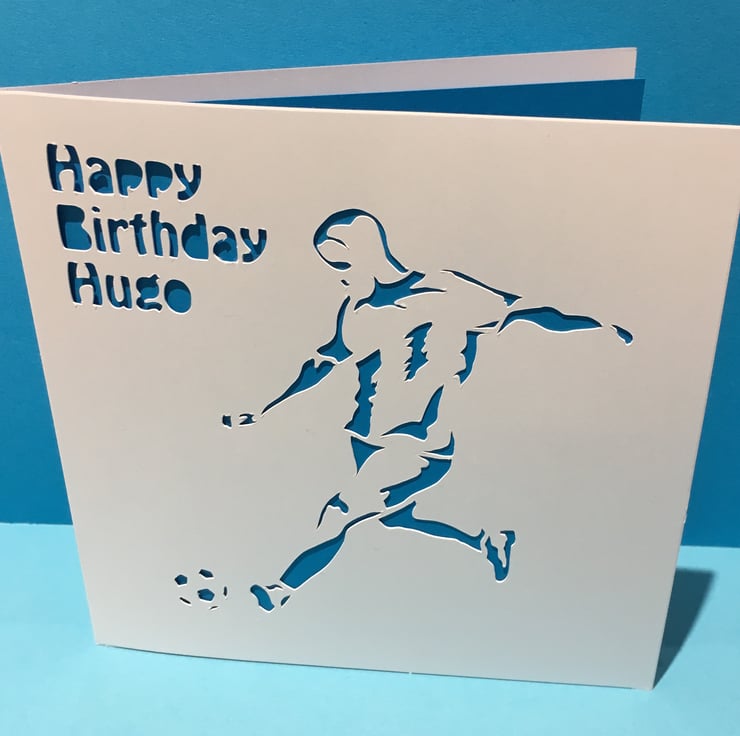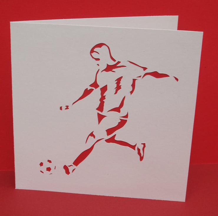 This cleverly designed card has been hand cut out of the card itself and coloured card has been stuck behind the shape. The perfect card for any football lover!