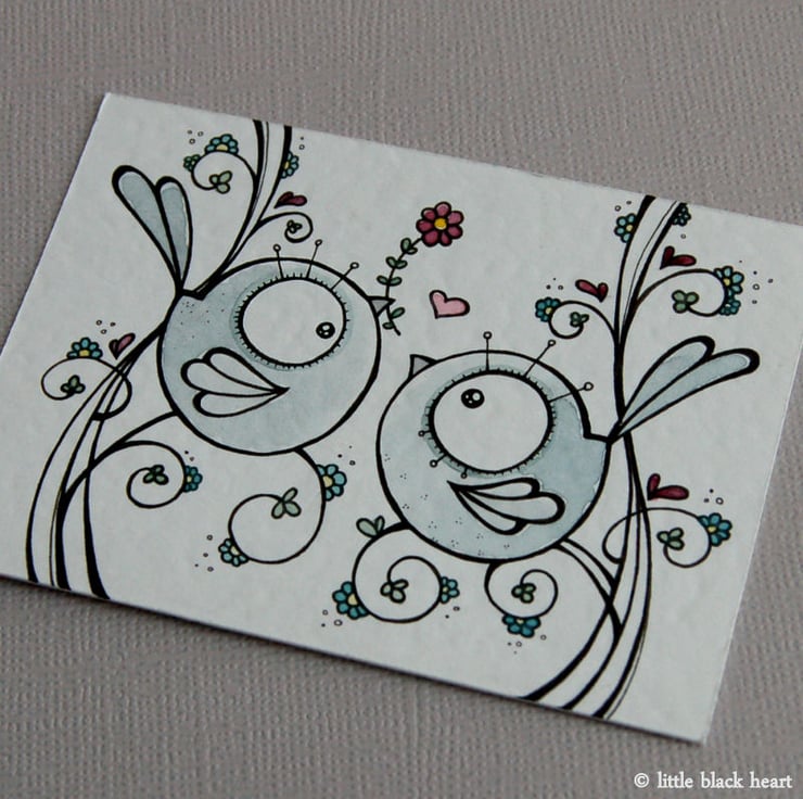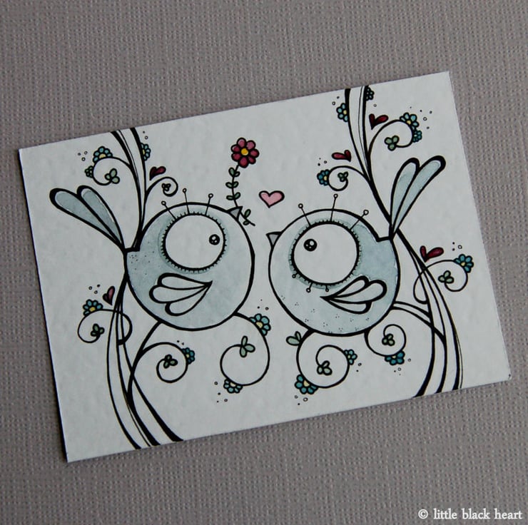 this is an original artwork in artists pens and watercolour paints, on textured white card.