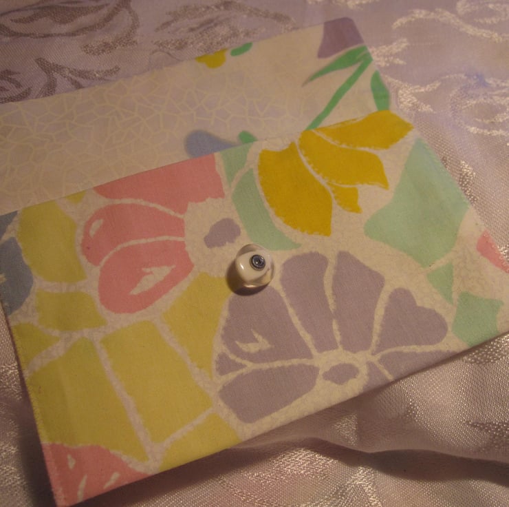 Simple cotton wallet. Button and loop fastening, fully lined. 19cm x 12cm