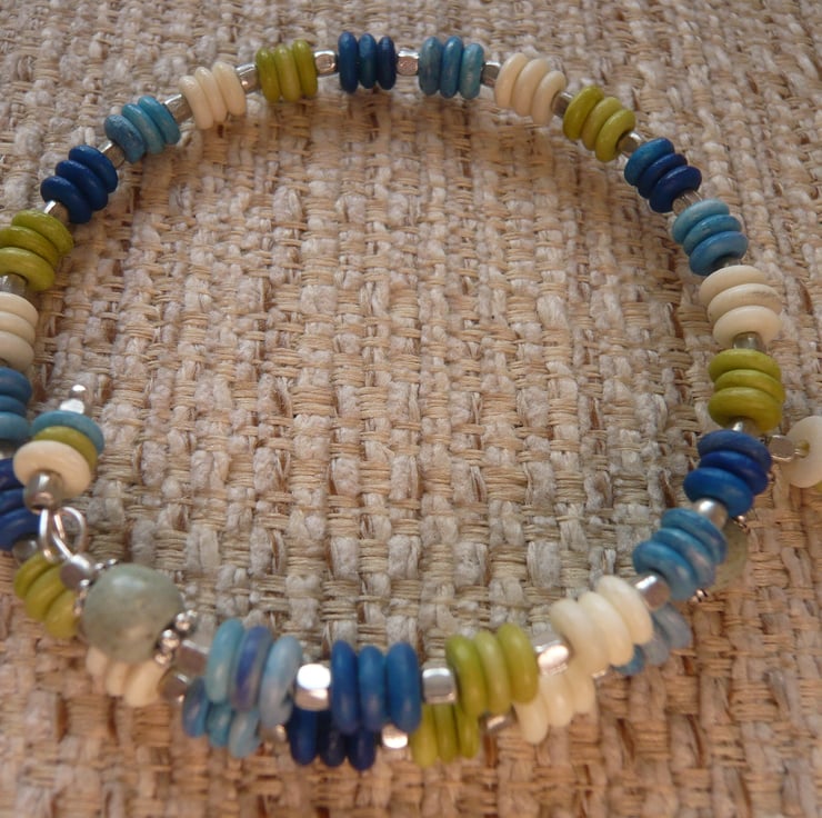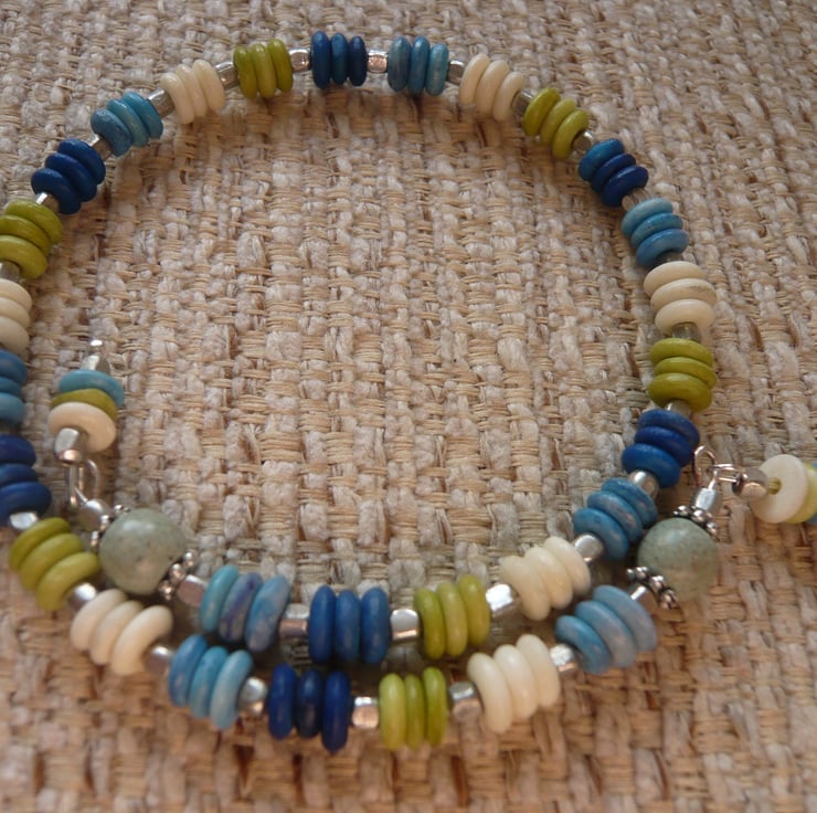 Hi, This bracelet is made from just over a single coil of memory wire. I have tried to give it a simple but yet striking effect. I was caught making this by a friend and she bought one but I have changed this to make it unique.