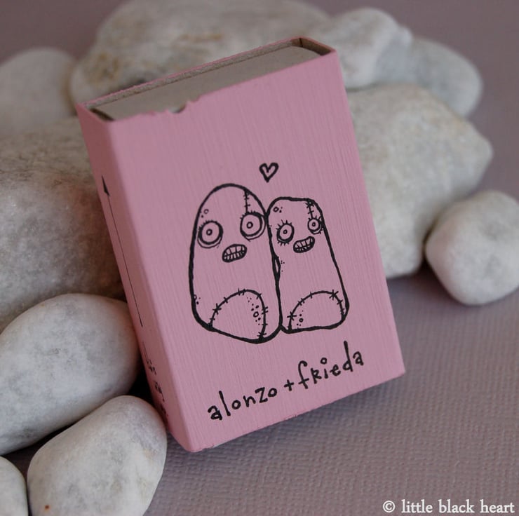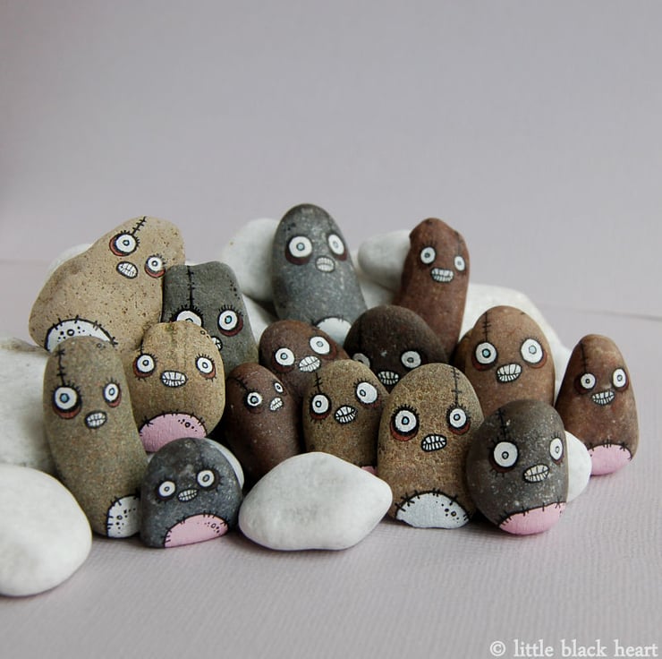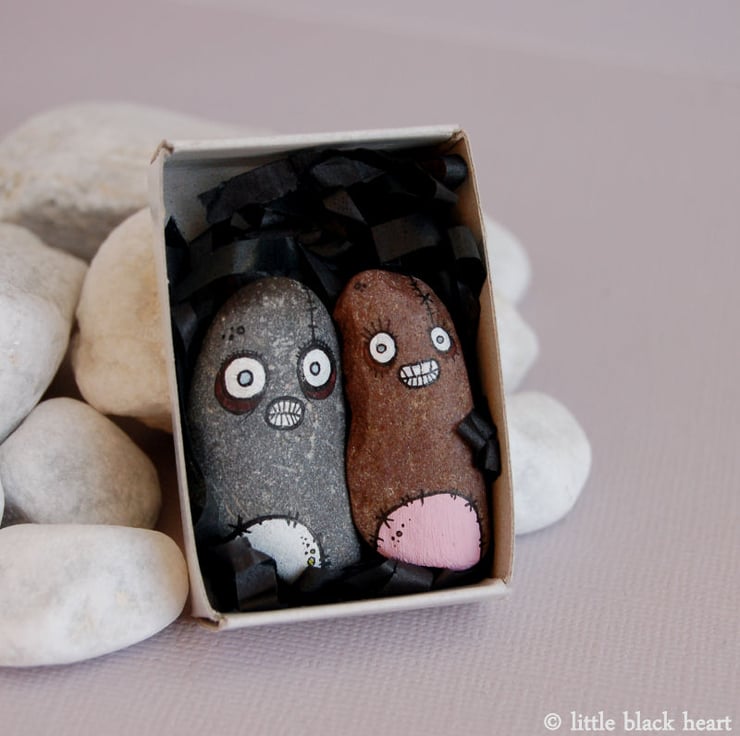 this is alonzo and his delightful lady friend frieda. they used to be a regular rocks, now they are zombie rocks.