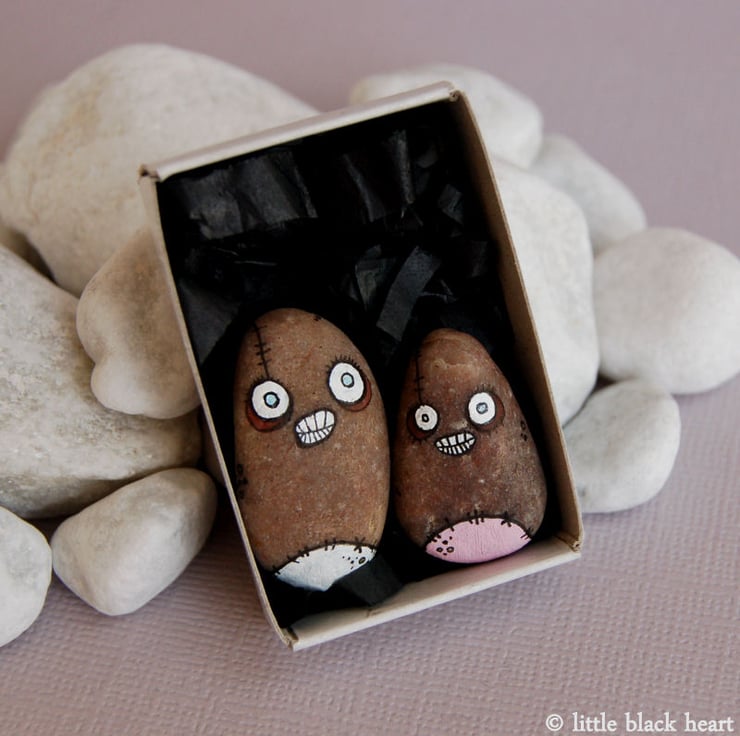 this is julio and his delightful lady friend consuela. they used to be a regular rocks, now they are zombie rocks.