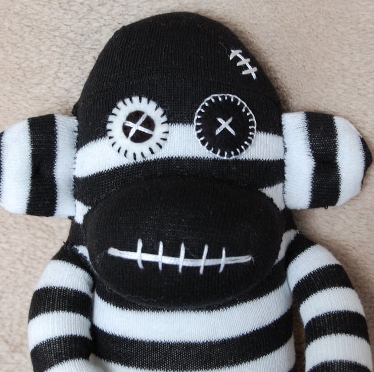 Jack is a fun soft monkey toy made from a brand new pair of socks and filled with polyester fibrefill conforming to EN71, CE marked and safe for babies, children and adults too!