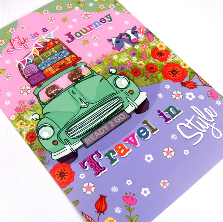These postcards are of original illustrations by me, created as an ink line drawing, scanned and digitally coloured. They look fab in little white 6x4 mounts and frames.