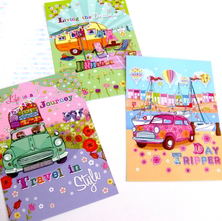 Pack of 3 postcards in 3 designs printed onto 350gsm gloss card. Post them, frame them, stick them on your fridge - be sure to love them and they will add a splash of warmth and colour to your day!
