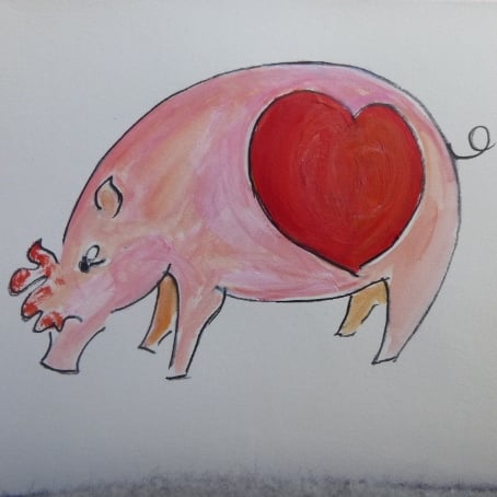 Hand painted bearded pig card, Anniversary, wedding, love heart