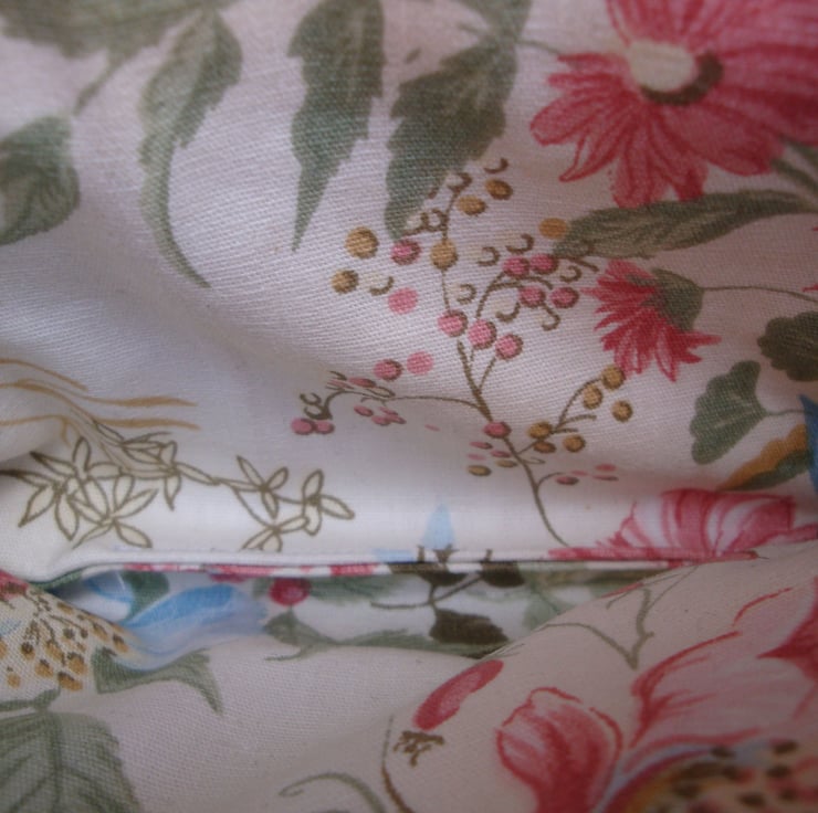 Case is fully lined in a floral cotton fabric, and has got a red zip across the top.