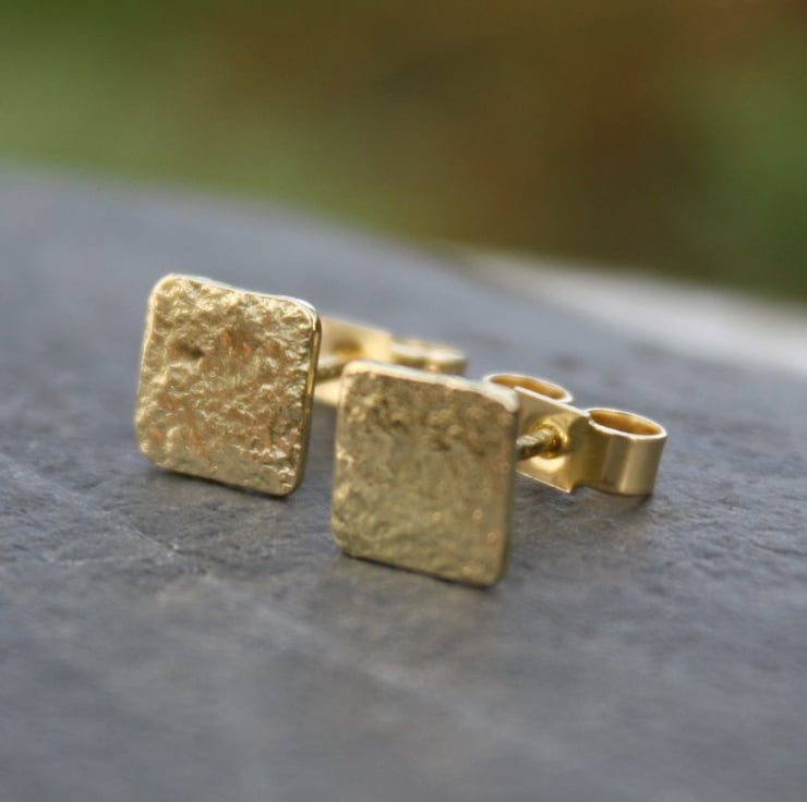 I have cut out and textured these little gold squares, the sides measure approx. 7 mm. They have been polished to a shiny finish.
